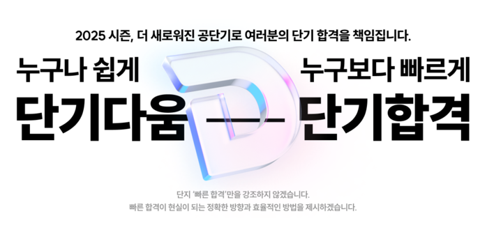 이번 리뉴얼은 교육 콘텐츠의 양적, 질적 강화를 목적으로 기획되었으며, 공단기의 핵심가치를 더욱 명확하게 전달하기 위해 BI도 변경한다. 새로운 BI의 ‘D’는 ‘단기 합격’의 첫 발음을 시각적으로 표현한 것으로 누구나 쉽고 빠르게 목표를 달성한다는 의미를 내포했다. 이를 통해 교육 플랫폼 브랜드로서의 이미지를 더욱 확고히 한다.