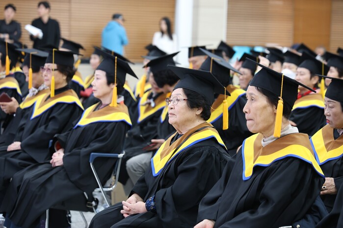 서울 구로구가 지난 29일 구청 강당에서 한번 웃으면 한번 젊어지는 제12기 일소일소(一笑一少) 노인 문화대학 수료식을 개최했다. 사진은 수료식에 참석한 노인들 모습. (사진=구로구청 제공)