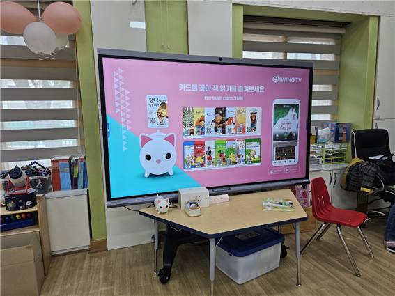 정심초 병설유치원은 아이들의 독서 흥미를 높이고 생각을 표현하는 능력을 키우기 위해 책 읽어주는 로봇 고양이 ‘리딩캣(아이윙)’을 도입했다.