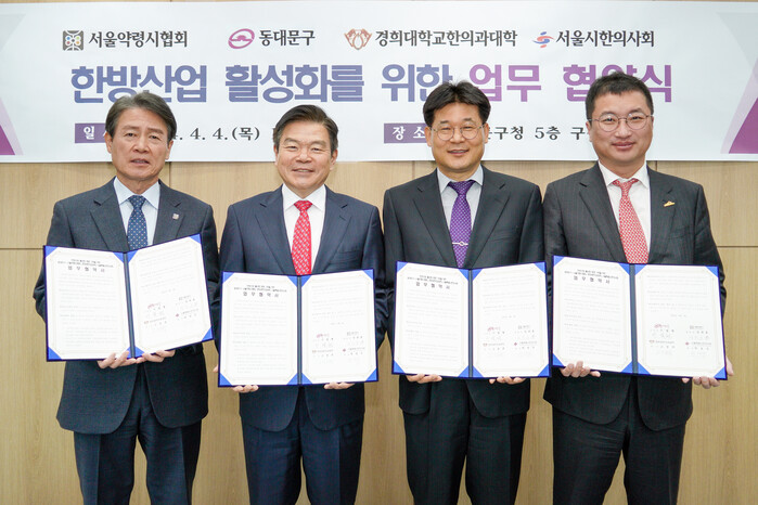 [시민일보 = 이대우 기자] 서울 동대문구(구청장 이필형)는 최근 서울약령시협회, 경희대학교한의과대학, 서울특별시한의사회와 한방산업 활성화를 위한 업무협약을 체결했다고 밝혔다.