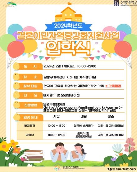 | ▲ 은평구 2024 결혼이민자역량강화지원사업 입학식 개최 포스터 (사진=은평구청 제공) |