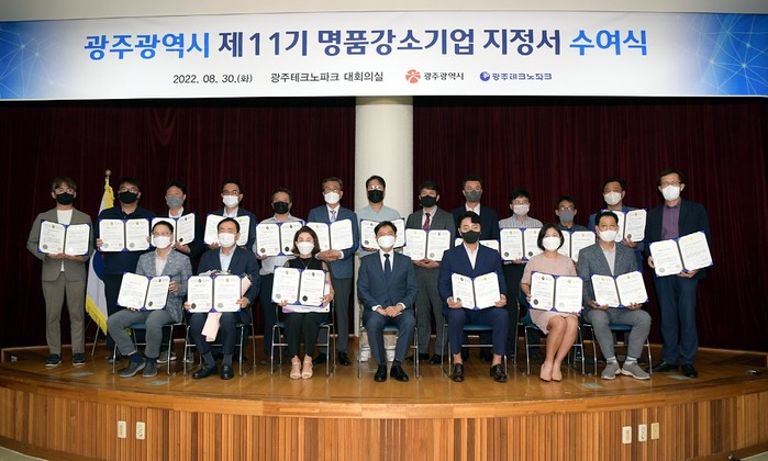 [광주=정찬남 기자] 광주광역시는 30일 광주테크노파크에서 지역경제를 이끌 ‘제11기 명품강소기업’으로 지역 중소기업 19개사를 선정하고 지정서를 수여했다.