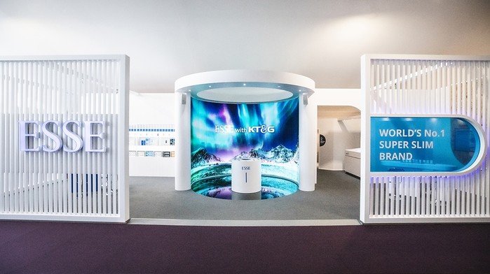 KT&G는 이번 박람회에서 브랜드존 부스를 열고 초슬림 글로벌 No.1 ‘에쎄(ESSE)’를 비롯해 레종(RAISON), 보헴(BOHEM) 등 각 브랜드의 프리미엄 제품들을 해외 면세시장에 선보인다.