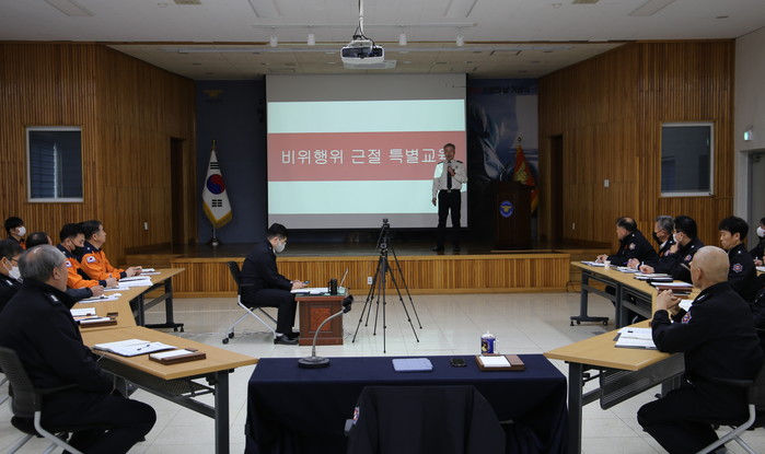 박승제 서장은 “이번 교육을 통해 우리 직원들이 비위행위의 경각심을 제고하고 공직자로서 올바른 자세를 생각해보는 계기가 되길 바란다.“며 ”지속적인 교육과 근절 대책으로 국민의 신뢰를 지켜나가도록 노력하겠다”고 전했다.