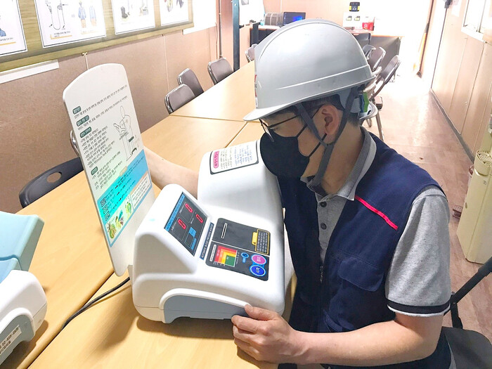 | ▲ 부영 아파트 공사 현장에서 근로자가 건강 체크를 하고 있다. (사진=부영그룹 제공) |