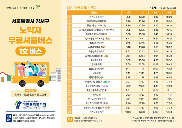 | ▲ 강서구 노약자 무료셔틀버스 1호 버스 리플릿. (사진=강서구청 제공) |