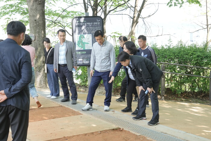특히 이 구청장은 오동근린공원 황톳길에 깨끗하고 효율적인 유지관리를 위해 건식 황톳길을 조성하되 쿠션감과 촉촉함을 느낄 수 있도록 황토 비율 등 원재료 혼합에 각별하게 신경 쓰기를 당부했다.