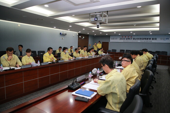 [시민일보 = 홍덕표 기자] 성북구(구청장 이승로)가 제6호 태풍 '카눈'을 대비해 8일 긴급 재난안전대책본부 회의를 개최했다.