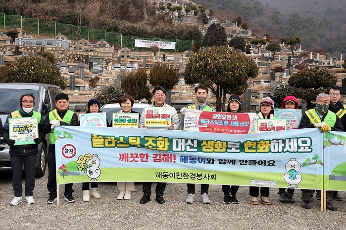 캠페인은 플라스틱 조화 없는 친환경 추모문화 조성을 위한 것으로 김해시중부자율방범연합대, 김해시재향군인회, 김해시여성단체협의회, 해동이친환경봉사회 등 사회단체 회원과 자원봉사자 120여 명의 자발적 참여로 이루어졌다.