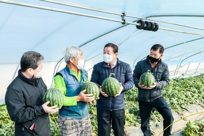 조근제 군수는 설 명절을 앞두고 19일 (장소나 위치 간략히 기재 부탁드립니다) 겨울수박 출하 현장을 방문해 관계자들을 격려하며 “함안수박이 맛과 명성을 유지할 수 있도록 경쟁력 강화와 철저한 품질관리를 위해 노력해 주시길 당부드린다”고 말했다.
