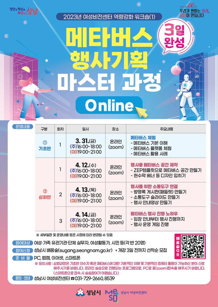 | ▲ 여성가족과-성남시 '메타버스 행사 기획 마스터과정' 운영 안내 포스터. |