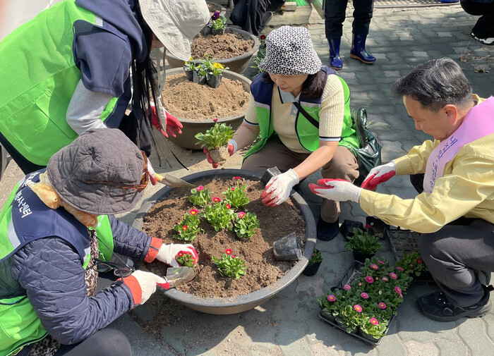 이들은 주민 통행이 많은 곳과 불법주차 및 쓰레기 무단투기 지역에 봄꽃을 심고 빗물받이 주변과 환경 취약 지역의 쓰레기를 말끔히 치웠다.