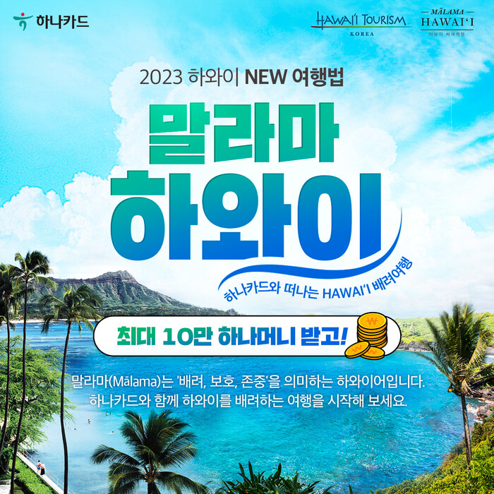 [시민일보 = 여영준 기자] 하나카드는 하와이 여행 특집으로 ‘하나카드와 하와이 가시면 감사하와이’ 이벤트를 진행한다고 22일 밝혔다.