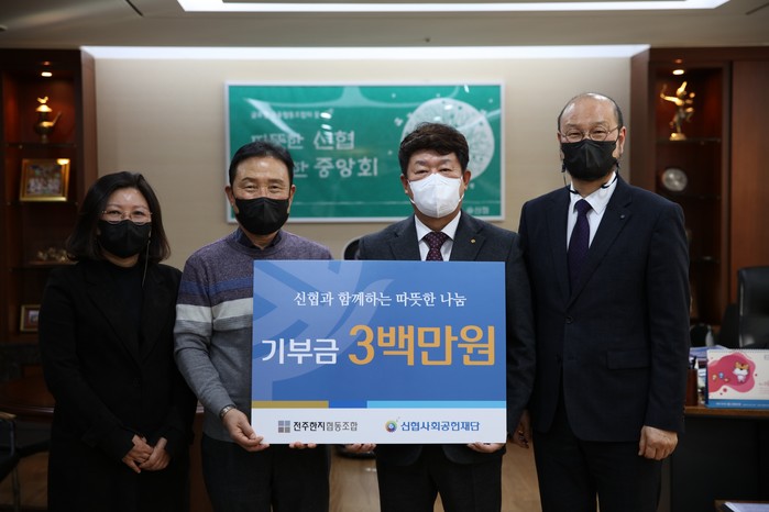 [시민일보 = 여영준 기자] 신협중앙회(이하 신협)는 지난 18일 전주한지협동조합이 신협사회공헌재단에 300만원을 기부하는 ‘기부금 전달식’을 가졌다고 밝혔다.