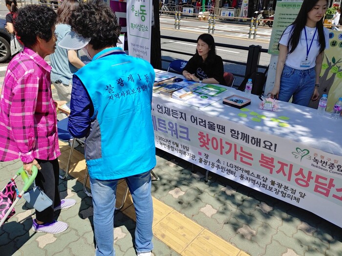 민관 협력사업으로 녹번종합사회복지관, 불광1동주민센터, 동지역사회보장협의체가 공동으로 주관해 주민들과 원활하게 소통할 수 있는 곳에 상담소를 설치해 운영했다.