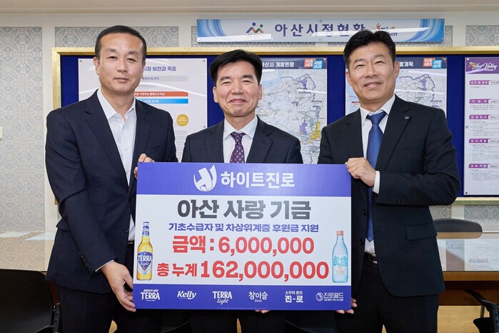 조일교 시장 권한대행은 “매년 어려운 이웃들을 위해 성금을 후원해 주신 하이트진로(주) 천안지점에 감사드리며, 기탁해 주신 성금은 어려운 이웃들을 위해 소중하게 사용하겠다”고 답했다.