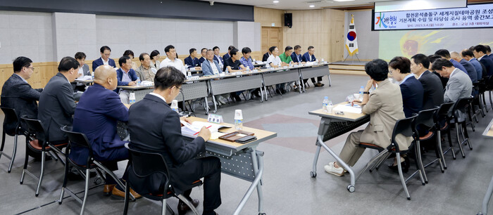 이번 중간보고회는 김윤철 군수를 비롯한 간부공무원, 조삼술 의장을 비롯한 합천군 의회의원, 합천운석충돌구 추진위원 등 50여 명이 참석한 가운데 용역기관인 경남연구원 김진형 박사의 보고로 진행됐고, 참석자들은 용역 진행 과정에 대한 궁금증을 해소하고 중점 추진 과제를 도출하는 등 다양한 의견을 개진하였다.