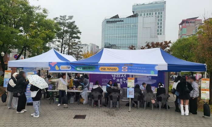 | ▲ 마포구 청소년상담복지센터가 지난달 홍대입구역 6번 출구 인근에서 멘헤라 문화 청소년을 위한 아웃리치 상담부스를 운영했다. (사진=마포구청 제공) |