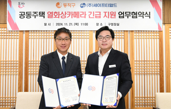 구는 21일 구청에서 ㈜세이프티월드와 ‘공동주택 전기차 화재 예방을 위한 열화상카메라 관제 시스템 구축 업무협약(MOU)’을 체결했다며 이같이 밝혔다.