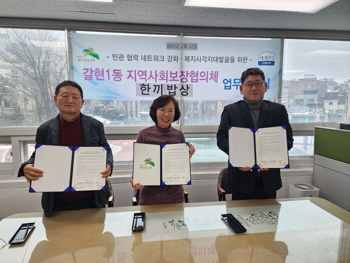 [시민일보 = 이대우 기자] 서울 은평구(구청장 김미경) 갈현1동은 최근 지역사회보장협의체와 ‘한끼밥상’ 식당이 복지 사각지대 발굴을 위한 업무협약을 체결했다고 밝혔다.