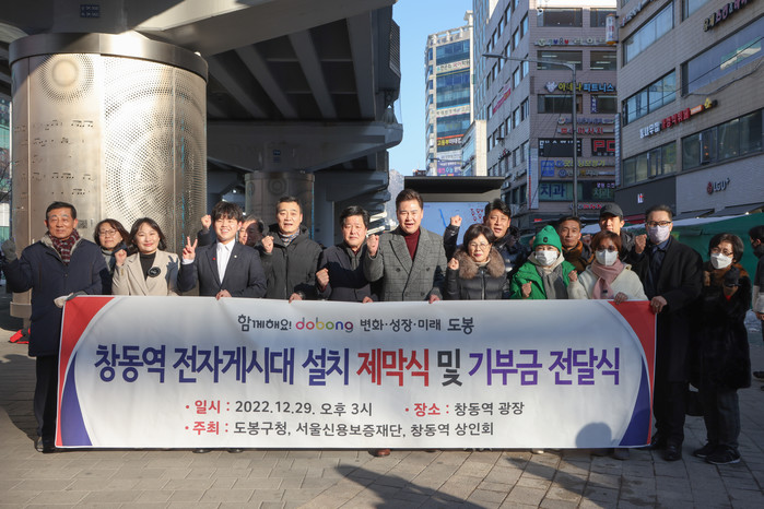 [시민일보 = 박준우 기자] 서울 도봉구(구청장 오언석)는 최근 창동역 1번 출구 앞 광장에서 전자게시대 제막식에 이어 기부금 전달식을 열었다.