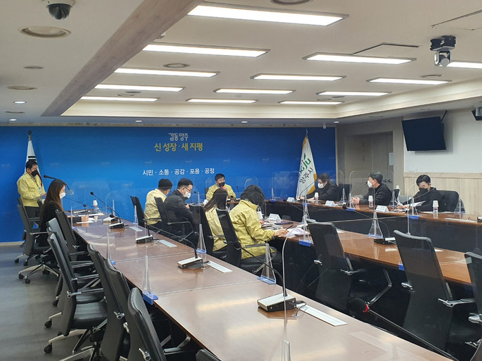 경기 양주시는 최근 양주시 요양시설 코로나19 비상대응협의체를 개최했다. 이날 주요 논의사항은 기관별 역할안내, 지역내 요양시설 확진 현황 등이다. 사진은 이날 회의가 진행되고 있는 모습. (사진제공=양주시청)