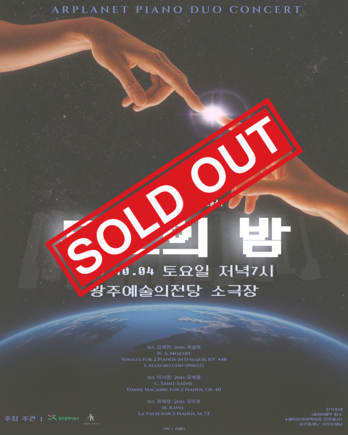 지난 9월 4일(목) 오전 10시에 예매를 시작한 본 공연은 오는 10월 4일(토) 광주예술의전당 소극장에서 열릴 예정으로, 두 대의 피아노가 만들어내는 압도적이고 화려한 클래식 사운드를 예고하며 오픈 직후부터 큰 관심을 받았다. 특히 이번 무대는 아르플래닛 2기 멤버들이 꾸미는 두 번째 공식 공연으로, 클래식 애호가뿐만 아니라 일반 시민들의 기대도 집중되었다.