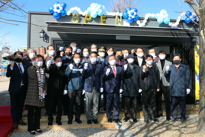 밀양시(시장 박일호)는 14일 택시기사들의 근로 복지 여건을 개선하기 위해 밀양역 광장에 조성한 택시기사 쉼터의 개소식을 개최했다.