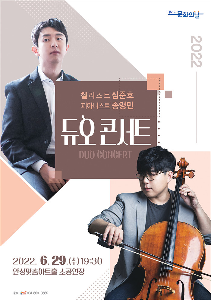 첼로와 피아노의 아름다운 듀엣 무대를 감상할 수 있는 「심준호 × 송영민 듀오 콘서트」의 티켓 가격은 1만원으로 ‘문화가 있는 날’ 할인가를 적용해 관람의 문턱을 낮췄다. 이밖에 공연에 대한 자세한 정보는 안성맞춤아트홀 홈페이지를 참고하거나 안성맞춤아트홀로 문의하면 된다.