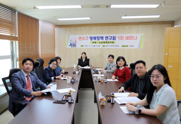 연수구의회 회의실에서 열린 세미나는 노인 정책연구회 대표의원인 김영임 연수구의원과 장현희·박현주·한성민 의원과 편용대 연수구의장, 당경자 대한노인회연수구지회 노인대학장, 신상준 인천시사회서비스원 부연구위원 등이 참여한 가운데 진행됐다.