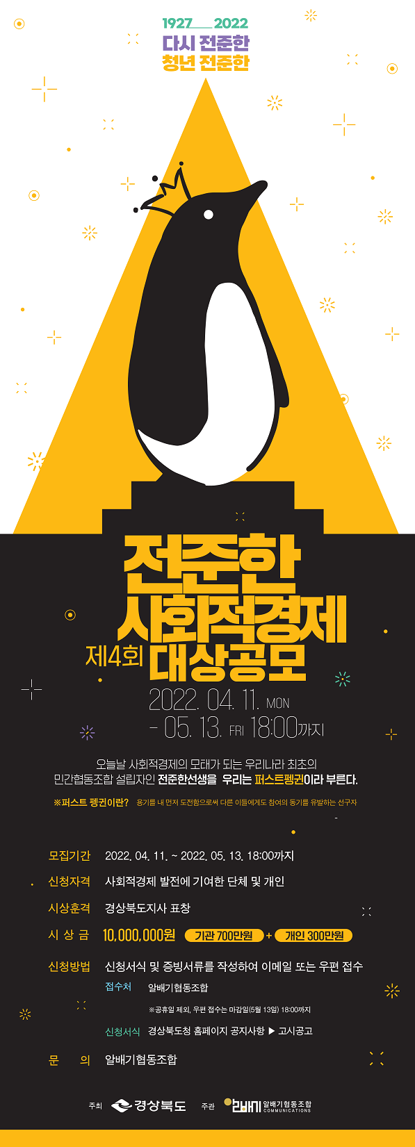 [시민일보 = 이승준 기자] 경상북도는 올해로 4회를 맞는 전준한 사회적경제 대상 공모를 오는 13일까지 접수 받는다.
