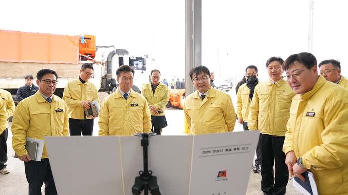 김광용 본부장은 안성시 제설 전진기지를 찾아 제설제 비축 현황과 제설 장비 가동 상태 등 겨울철 대설 대응 준비 상황을 직접 확인하고 강설 시 신속하고 체계적인 현장 대응이 이뤄질 수 있도록 철저한 대비를 당부했다.