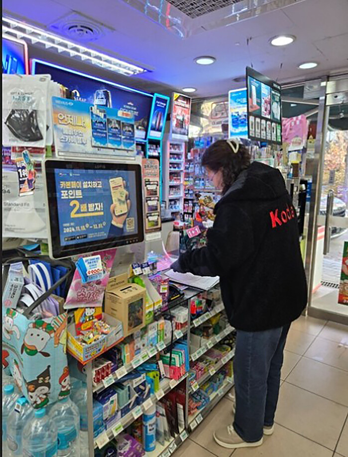 | ▲ 위생정책과-성남시 어린이 기호식품 전담관리원이 학원가 주변 편의점에서 소비기한 경과 식품 등을 진열·판매하는지 여부를 점검하고 있다(자료사진) |