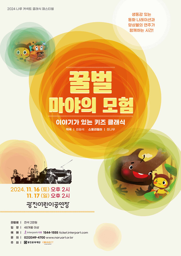 [시민일보 = 여영준 기자] 광진구(구청장 김경호)가 오는 16일, 17일 이틀간 광진어린이공연장에서 ‘꿀벌 마야의 모험’ 키즈 클래식 공연이 열린다고 밝혔다.