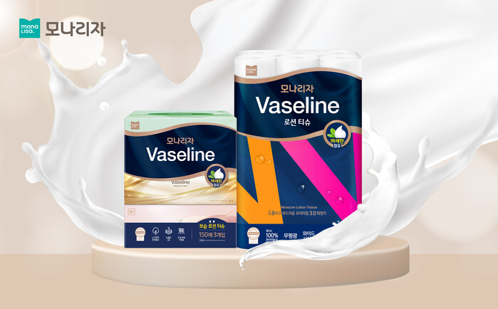 | ▲ ㈜모나리자의 ‘바세린 로션 미용티슈’ 및 ‘바세린 로션 두루마리 화장지’ (사진= ㈜모나리자 제공) |