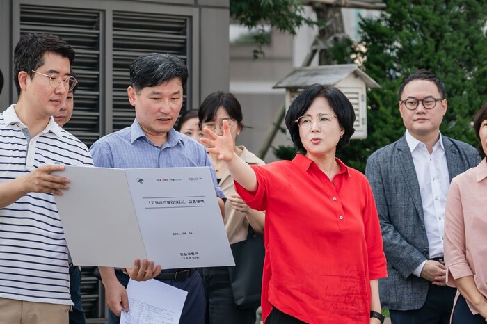 | ▲ 지난 5일 고덕비즈밸리 현장을 점검하는 이수희구청장 모습. (사진=강동구청 제공) |