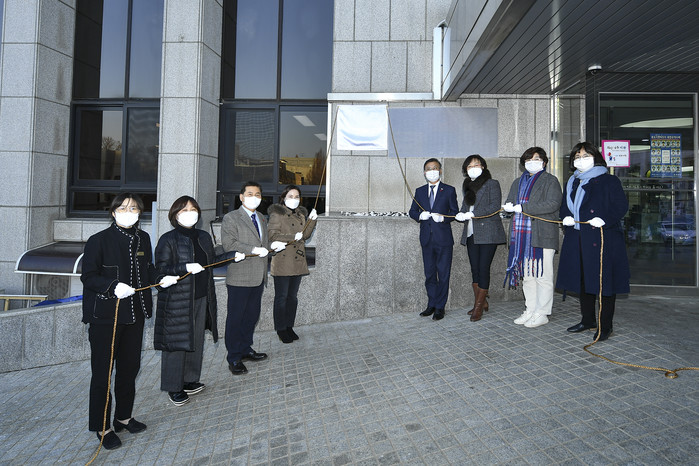 경기 김포시가 22일 (사)한국공정무역마을위원회의 공정무역도시 인증을 기념해 현판 제막식을 개최했다. 시는 전국 17번째 공정무역도시로 오는 2022년에도 공정무역 활성화를 위해 공정무역 홍보활동 등 다양한 사업을 준비하고 있다. 사진은 행사에 참여한 정하영 시장(가운데 오른쪽)이 관계자들과 제막식을 진행하고 있는 모습. (사진제공=김포시청)