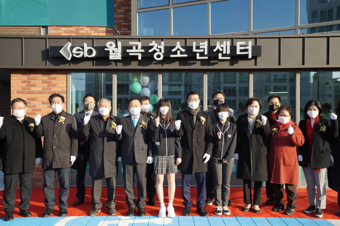 서울 성북구는 지난 22일 청소년 전용공간인 월곡청소년센터 개관식을 개최했다. 청소년센터는 증축 및 리모델링을 거쳐 지하 1층~지상 3층, 연면적 1046㎡ 규모로 재탄생했다. 사진은 개관식에서 이승로 구청장(오른쪽 다섯 번째)이 관계자들과 기념촬영을 하는 모습. (사진제공=성북구청)