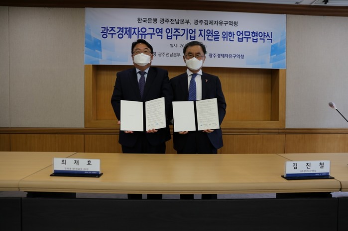 양 기관은 한국은행 광주전남본부에서 협약식을 열고 ▲입주 중소기업에 대한 금융 지원 ▲중소기업 금융애로 완화 ▲지원대상 중소기업 관련 정보의 공유 및 금융지원 홍보 등 광주경제자유구역 내 입주기업 지원에 협력키로 했다.