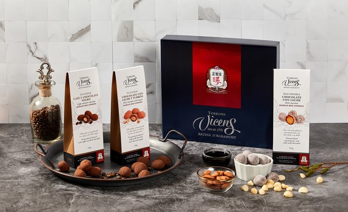 이번 콜라보 제품은 비센스가 추구하는 정통 뚜론 및 초콜릿에 정관장 6년근 홍삼농축액을 블렌딩하여, 스페인 현지 최고 장인의 손에서 최적의 레시피로 탄생했다. 미슐랭 스타쉐프 ‘알버트 아드리아’도 레시피에 참여하여 특별함을 더했다.