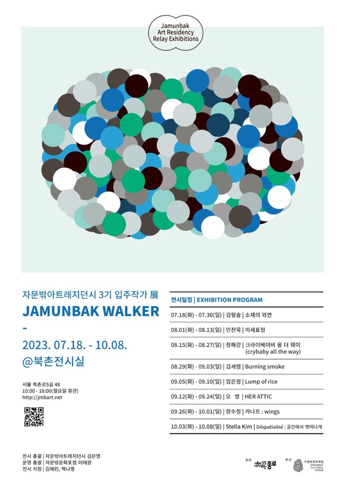 전시 관련 문의는 자문밖 아트레지던시 누리집을 참고하면 된다. 북촌전시실은 화~일 오전 10시부터 오후 6시까지 열려있다.