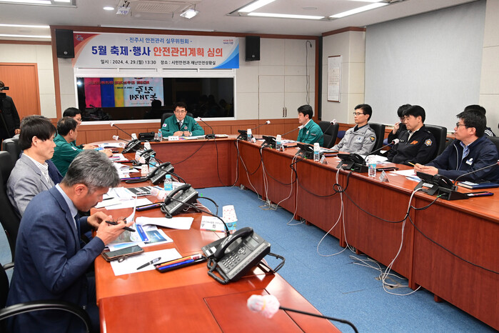 진주시는 29일 시청 재난안전상황실에서 5월에 개최되는 ‘제23회 진주논개제’, ‘실경역사뮤지컬 의기논개’, ‘TV조선 슈퍼콘서트’ 및 ‘2024 어린이날 기념행사’를 앞두고 성공적인 축제·행사 개최를 위한 진주시 안전관리 실무위원회를 개최했다.