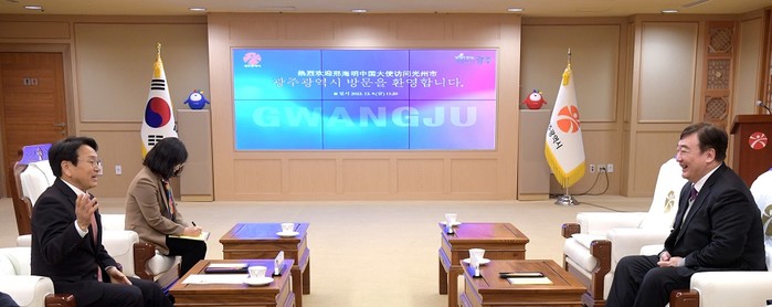 [광주=정찬남 기자] 강기정 광주광역시장은 한·중수교 30주년을 맞아 9일 시청 비즈니스룸에서 싱하이밍(邢海明, 58) 주한 중국대사를 접견하고 중국과의 교류 협력 확대 방안을 논의했다.