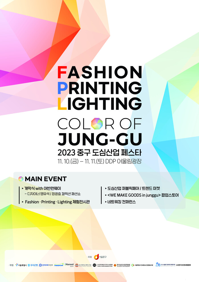 [시민일보 = 여영준 기자] 서울 중구(구청장 김길성)가 오는 10~11일 양일간 동대문 디자인 플라자(DDP) 어울림광장에서 ‘2023 도심산업 페스타 Color of Junggu