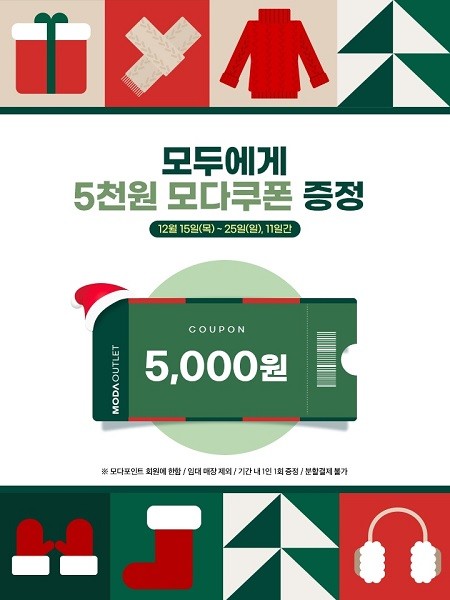 이번 ‘고객감사 페스티벌’은 연말을 맞이해 모다아울렛 전 회원 모두에게 1만원 상당의 혜택을 기본적으로 제공한다.