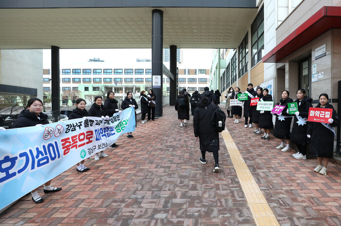 [시민일보 = 이대우 기자] 서울 강남구(구청장 조성명)가 새 학기를 맞아 올해 상반기 청소년 불법 마약 근절을 위한 민·관·경 합동 등굣길 릴레이 캠페인을 대대적으로 실시한다.