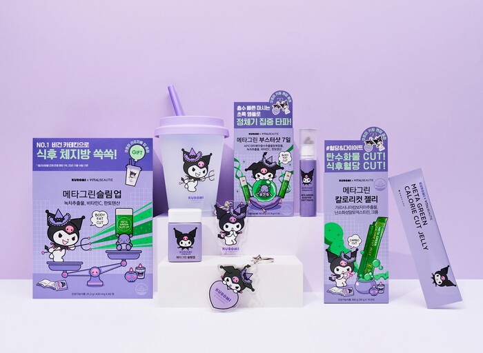 바이탈뷰티의 다이어트 건강기능식품 스테디셀러인 메타그린은 매 시즌 헬로키티, 마이멜로디, 포차코 등의 에디션을 선보이고 있다. 콜라보 에디션들은 출시와 동시에 조기 품절되거나 올리브영 다이어트 카테고리 랭킹 1위를 달성하는 등 높은 화제성을 보였다. 2024 시즌에는 Z세대의 당당한 자신감을 닮은 ‘쿠로미’와 콜라보를 통해 다이어트 카테고리 1위 메타그린의 자신감을 드러내며 더욱 높은 기대감을 불러일으킨다.
