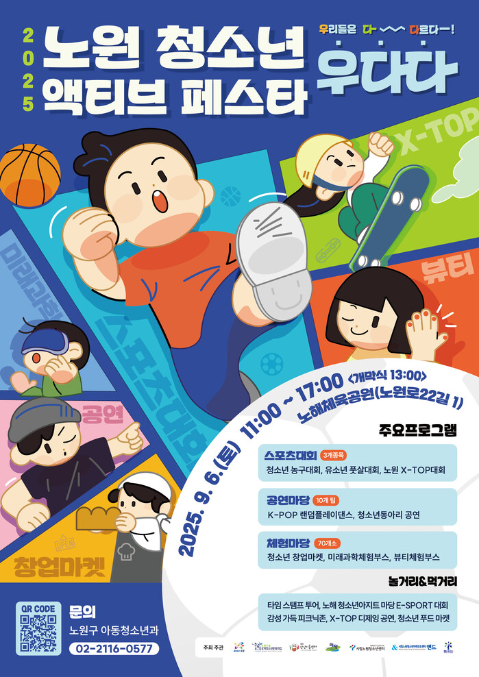 | ▲ ‘2025 노원 청소년 액티브 페스타 우다다’ 포스터. (사진=노원구청 제공) |