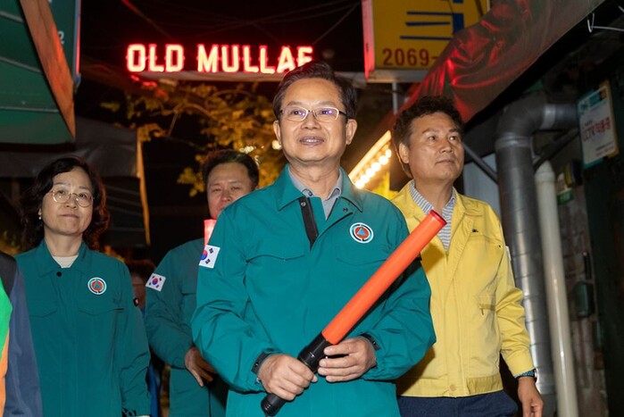 | ▲ 10.27. 문래동 일대에서 유관기관과 함께 합동점검하고 있는 최호권 영등포구청장 (사진=영등포구청 제공) |