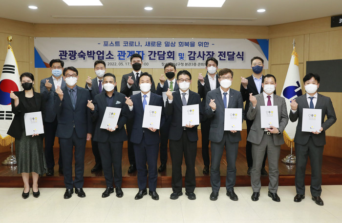 구는 안심숙소 운영에 협조한 호텔과 각종 행사·모임 시 방역수칙을 철저히 준수한 호텔 등 코로나19 감염병 확산 방지에 큰 역할을 한 12개 호텔에 감사장을 수여했다.